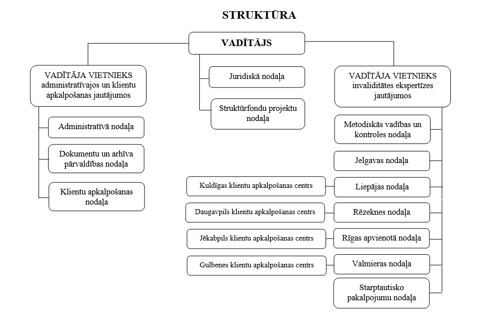Veselības un darbspēju ekspertīzes ārstu valsts komisijas struktūra.